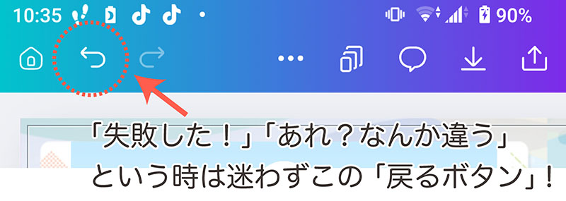 「あれ?ここにあったフレームがどこかにいっちゃった??」というような事が起きて、色々先に進めるよりも「戻るボタン」で元の状態にすることが一番大切です。