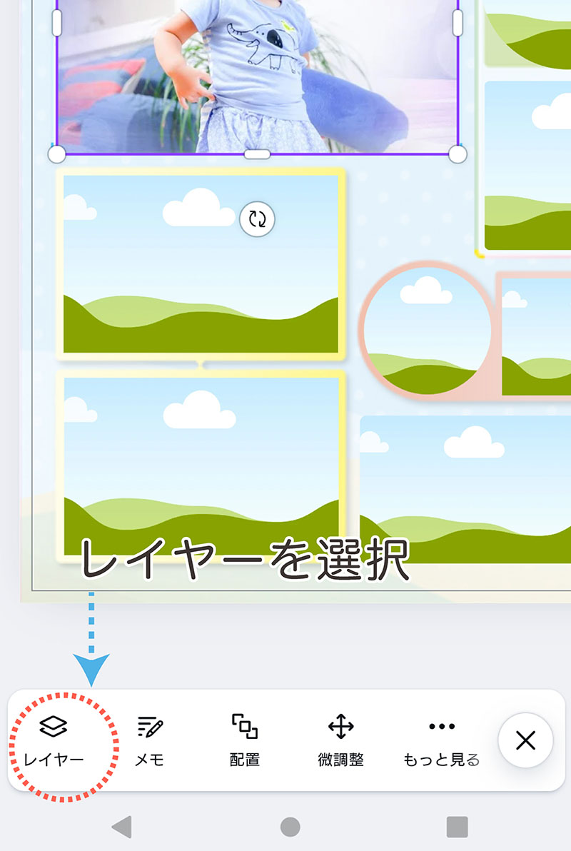 2.写真をタップ→下部のナビゲーションをスライドして「レイヤー」を見つけたらタップします。