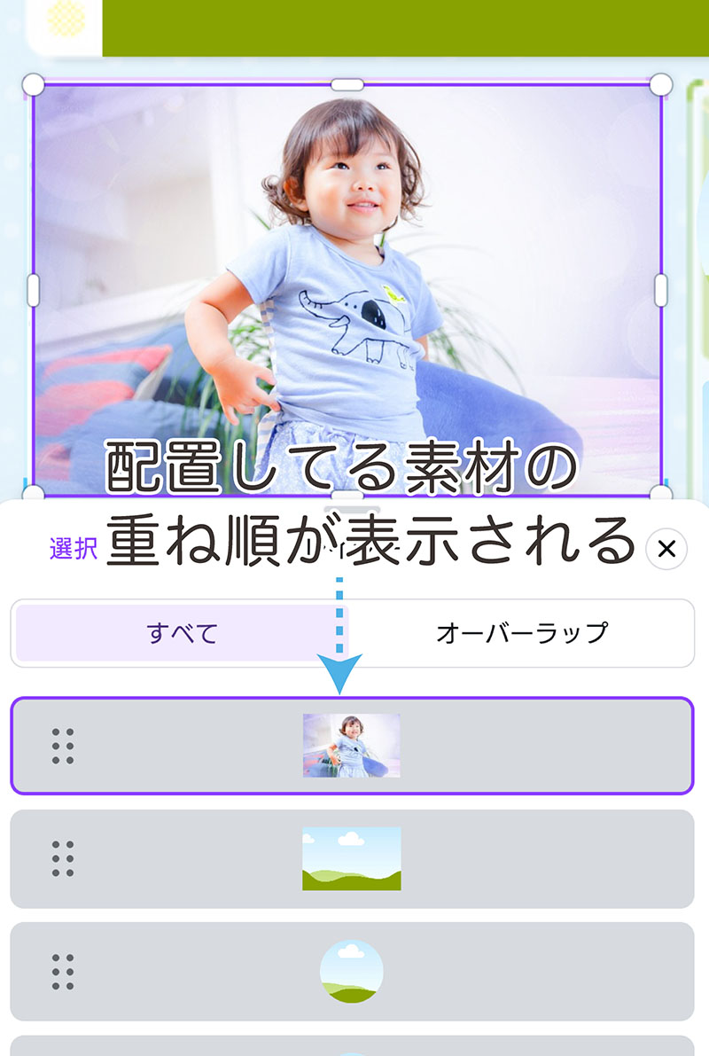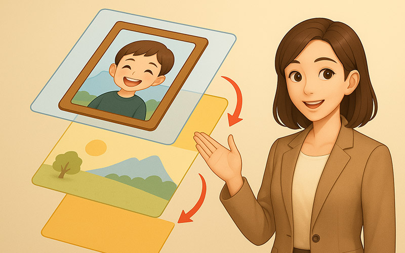 レイヤーとは「写真や素材の重なり合う順序」のことを言います。